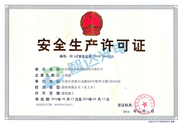 拥有“城市及道路照明工程专业承包一级”资质 以及“照明工程设计专项甲级”资质 安防、节能改造(EMC)等多项专业资质 智达光电拥有国家专利50余项 计算机软件著作权17项 其中2项发明专利